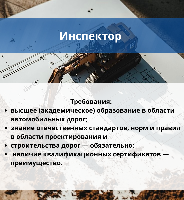 1. Инженер-дорожник (проектирование, расчёт объёмов работ);